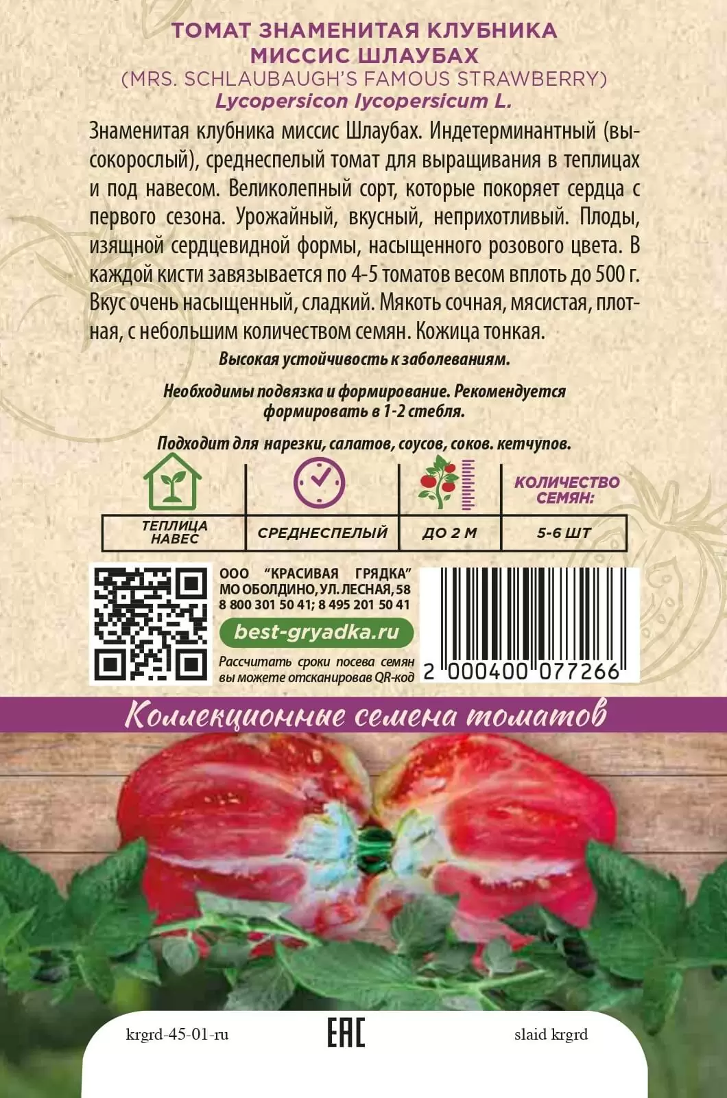 Томат Знаменитая клубника миссис Шлаубах (Mrs. Schlaubaugh’s Famous Strawberry)