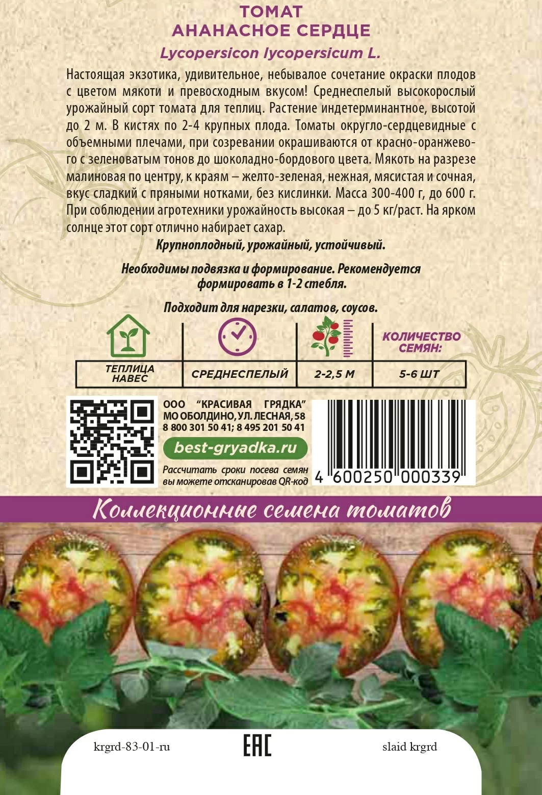| Реквизиты | Товар, Запас, Цветные, Сердце, Теплица, Сорт, Среднеспелый, Красивая Грядка, Индетерминантные, Цветные, Сердце, Теплица, Сорт, Среднеспелый, Красивая Грядка, Индетерминантные |
