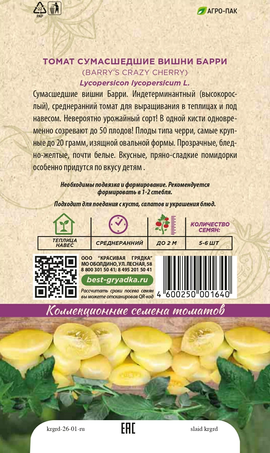 | Реквизиты | Товар, Запас, Желтый, Черри, Теплица, Сорт, Среднеспелый, Красивая Грядка, Индетерминантные, Желтый, Черри, Теплица, Сорт, Среднеспелый, Красивая Грядка, Индетерминантные |