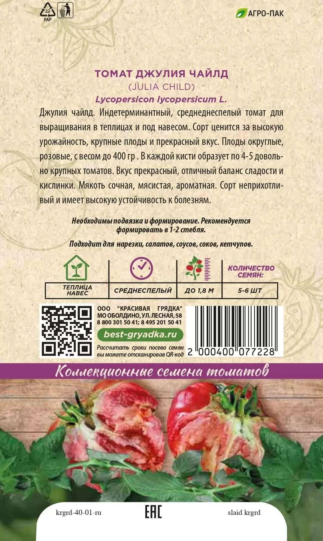 | Реквизиты | Товар, Запас, Розовый, Округлая, Теплица, Сорт, Среднеспелый, Красивая Грядка, Индетерминантные, Розовый, Округлая, Теплица, Сорт, Среднеспелый, Красивая Грядка, Индетерминантные |