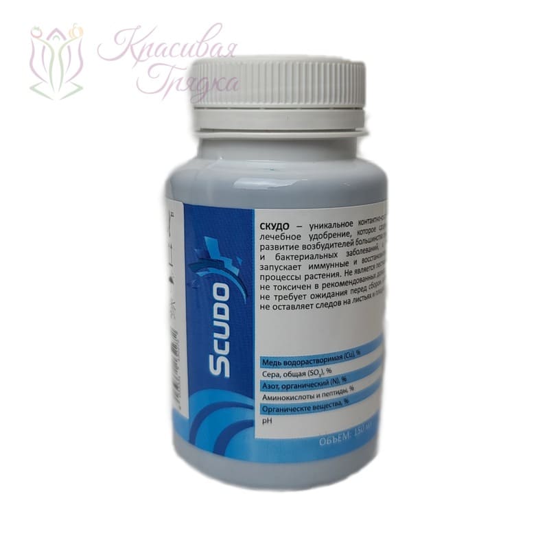 СКУДО – уникальное контактно-системное лечебное удобрение, которое сдерживает развитие возбудителей большинства грибных и бактериальных заболеваний, а также запускает иммунные и восстановительные процессы растения. Не является пестицидом, не токсично в рекомендованных дозировках, не требует ожидания перед сбором урожая, не оставляет следов на листьях и плодах.